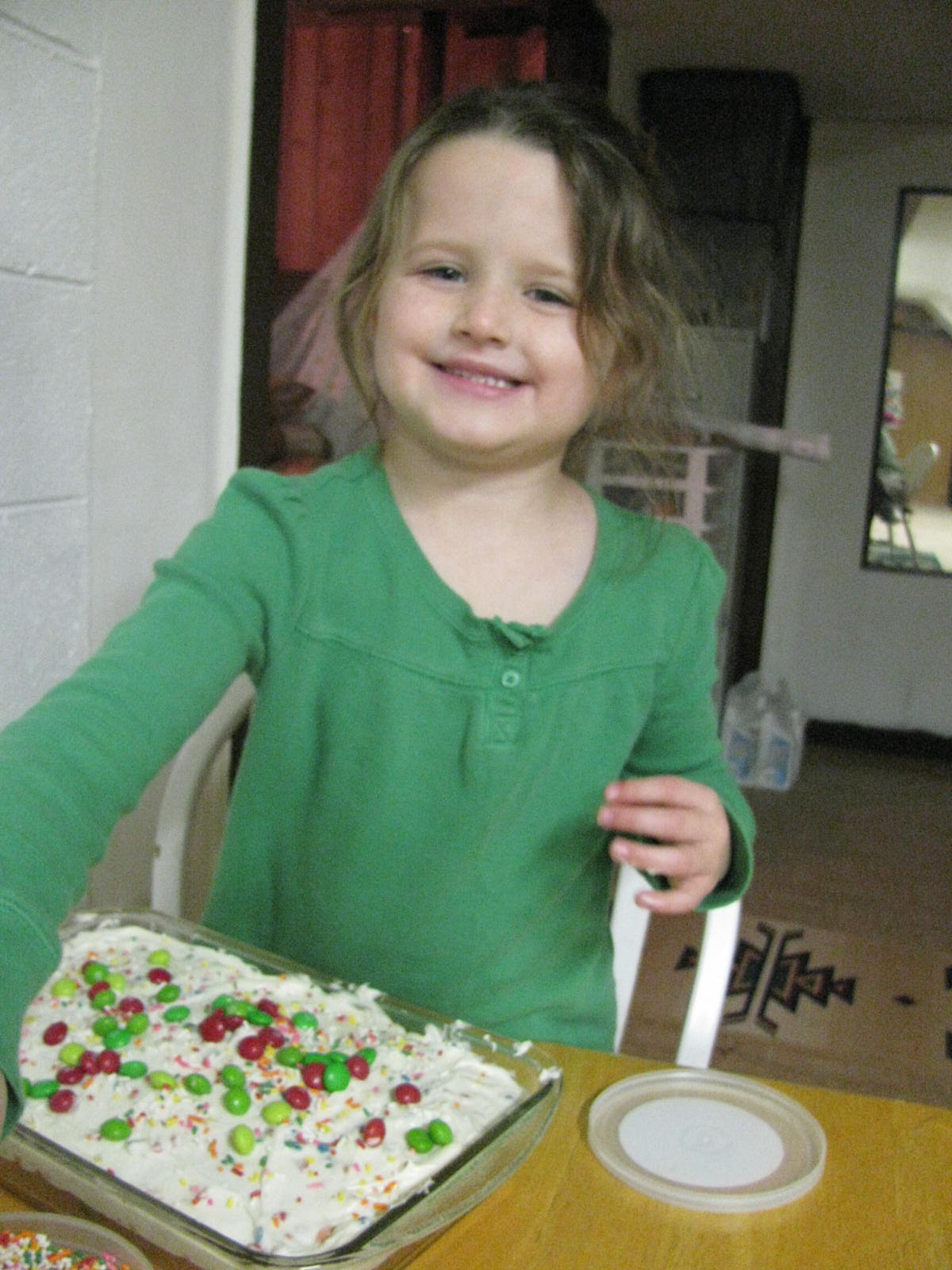 | Getting ready to decorate cookies...the bell around her neck was made as well |